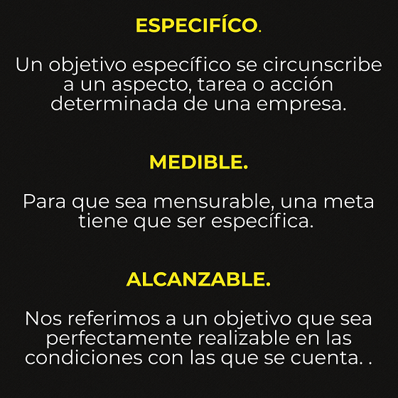 - Specific (específicos): un objetivo debe referirse a un logro concreto y tangible, por ejemplo, «aumentar en un 30% la generación de leads procedentes de canales digitales durante el próximo año».